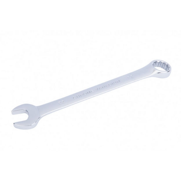 The BlueSpot 22mm Fully Polished Chrome Vanadium Spanner is manufactured from chrome vanadium and nickel chrome plated for increased durability. Double-ended spanner with open and bi-hexagonal ring head. Open-ended head has an offset of 15°.