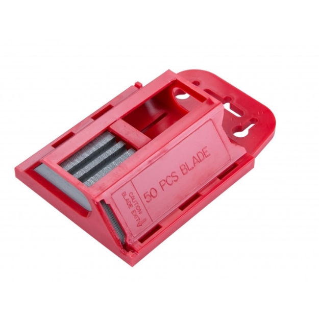 The BlueSpot 50 Piece Utility Blades in a dispenser are manufactured from high carbon steel for increased durability and cutting power. Suitable for use with all standard fixed blade and retractable utility knives. Includes heavy-duty dispenser for safe storage. Includes 50 utility blades.