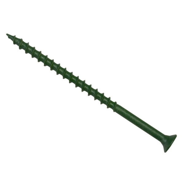 The Decking Screw is a coarse single thread screw developed specifically for fixing decking and is hardened and specialist Green treated and compatible with a countersunk pozi. This screw is designed for decking but also ideal for other exterior timber and fencing uses and the Pozidrive compatible head enables higher torque levels with a reduced risk of cam out while the extremely coarse thread provides increased holding power in all types of decking timber. This screw is specifically designed to accommodate wood’s natural tendency to expand and contract and is hardened and green treated for maximum durability in the face of the elements.