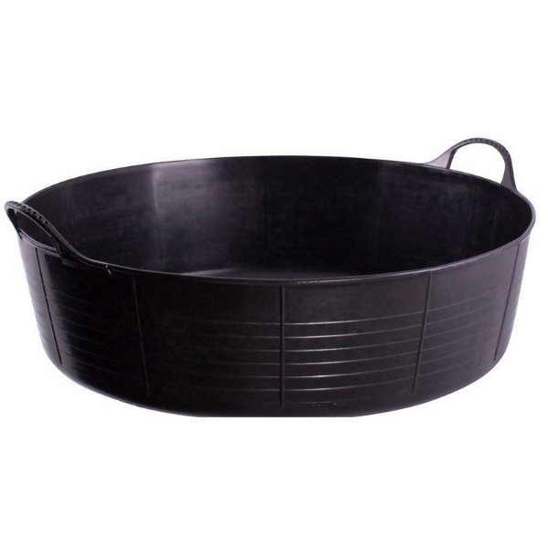 The Large Shallow Gorilla Tub in Black can hold 35 litres and is a flexible and weather resistant tub that weighs 1300g. The golf patterned handles make the Gorilla Tub easy to carry around and strong enough to carry as much as you can fit in. Made from food-grade material, the Gorilla Tub is suitable for storing and food preparation.