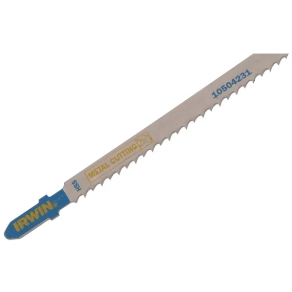 Irwin Jigsaw Metal Cutting blades. T Shank for AEG, Bosch, DEWALT and Hitachi Jigsaws. Fast, straight cuts in aluminium 4-15mm, plastic 4-30mm, non-ferrous metal, metal 4-6mm, fiberglass, lead, tin 4-20mm.