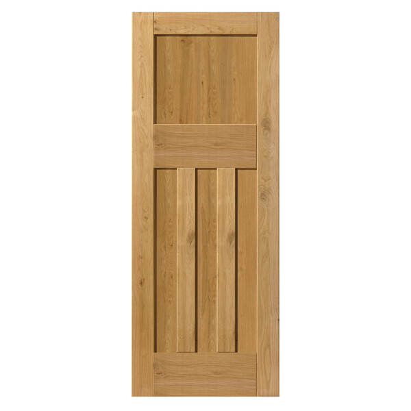 JB Kind rustic oak interior door, naturally knotty in appearance. Features 1930's DX style panelling, perfect for traditional interiors . Supplied with varnish finish, for a quick and hassle free installation.
