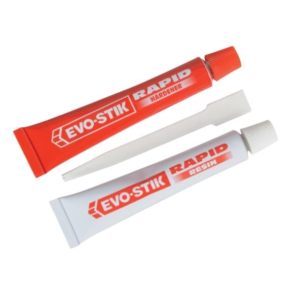 EVO-STIK Epoxy Rapid Tubes are a two part epoxy adhesive, providing an ultra-strong bond in just 5 minutes.This rapid curing epoxy can be roughly handles after 30 minutes and is ideal for use on ceramics, wood, glass, metal and most hard plastics.Includes a spatula and tray for mixing