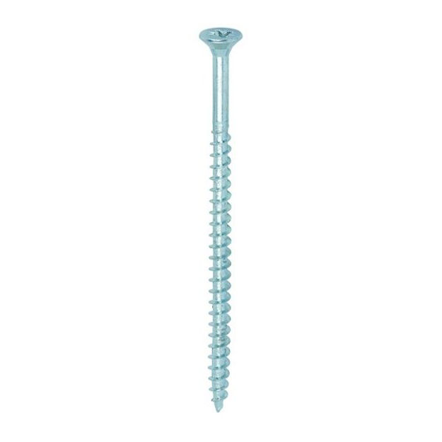 A single thread woodscrew mainly used in various types of timber and man-made boards or or into masonry with the use of a plastic plug.