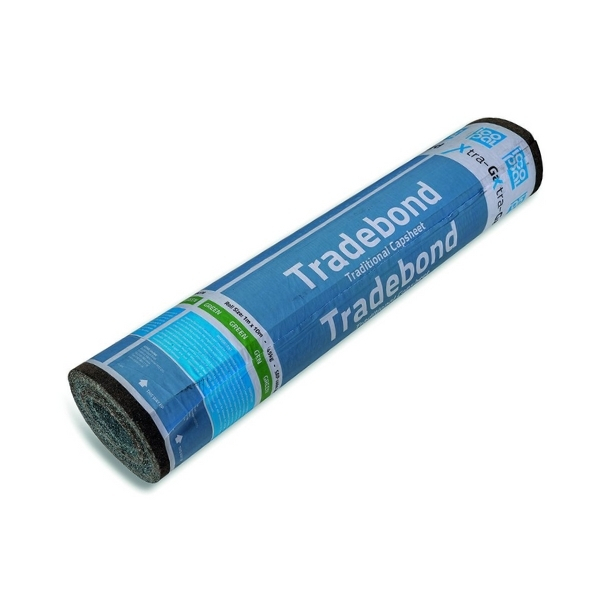 Anderson Xtra-Gard Tradebond Green Mineral is a glass fibre reinforced membrane coated with bitumen and finished on the upper surface with green mineral granules and on the underside with fine silica sand to prevent sticking in the roll. Is is used as a fully bonded top layer of a built-up roofing system.