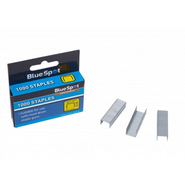 The BlueSpot 8mm Crown Flat Wire Staples T50 Style are suitable for use with 8mm staple guns. Each box contains 1000 staples.
