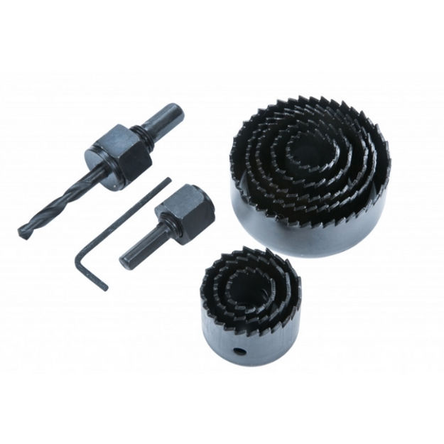 The BlueSpot 11 Piece 19mm - 64mm Hole Saw Set is ideal for non-ferrous metals, plasterboard, plastic and wood. Manufactured from heat-treated carbon steel for increased durability and cutting power and includes a handy carrying case for quick and convenient storage. Includes hex key and arbors.