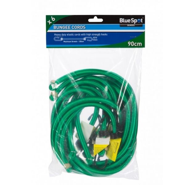 The BlueSpot 6 PCE 90cm Bungee Cord Set are specially designed to provide quick and convenient load binding around the home and workplace. The 12mm diameter heavy-duty cord provides excellent holding power and constant tension. The high strength rounded cap hooks help to prevent scratching. Ideal for use with bikes, boats, cars, tarpaulin, trailers, trucks and more.