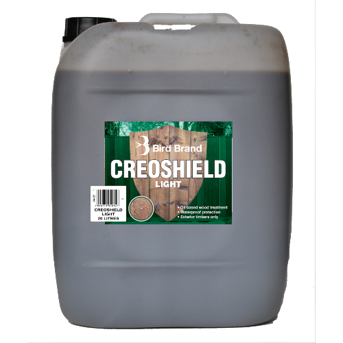 Creoshield is a solvent-based, ready-to-use exterior timber treatment. Creoshield® imparts an attractive and water-repellent finish, resembling the old creosote versions with a reduced but characteristic odour. Creoshield® penetrates the timber and has a wax additive designed to repel rainwater for approximately the 1st year of service.