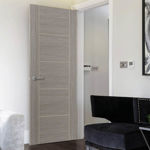 JB Kind contemporary grey laminate interior door with grooved panel effect, perfect choice to bring a modern feel to any room. Supplied fully finished, for a quick and hassle free installation!