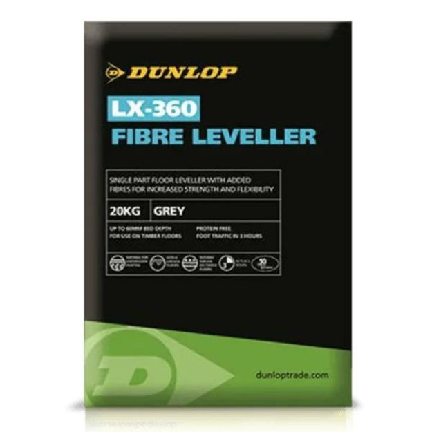 Dunlop LX-360 Fibre Leveller a single-part floor leveller with added fibres for increased strength and flexibility. Suitable for preparing interior floors in dry areas prior to laying sheet and tile soft floor coverings, carpet, natural stone and ceramic tiles. Can be used on both absorbent and non-absorbent interior floor surfaces including timber, concrete, cement:sand screeds, terrazzo, asphalt, quarry tiles and old but sound adhesive residues. It can be laid at depths from 3mm up to 60mm in one application. Ideal for use with underfloor and undertile floor heating systems.