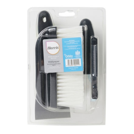 Harris Paperhanging Kit is everything you need for wallpapering your home. The kit contains a Harris Paperhanging Brush, Stripping Knife, Seam Roller and Wallpaper Trimming Knife. For use when wallpapering.