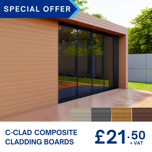 C-CLAD COMPOSITE CLADDING BOARD - 3.6M X 150MM X 21MMC-Clad composite wall cladding is an easy to install, virtually maintenance free, durable and sustainable way to enhance and protect an exterior wall or garden building. Each board is 3.6m long x 150mm wide (135mm fixed face) x 21mm deep (coverage of 0.48m2 per board), and available in a range of colours. |