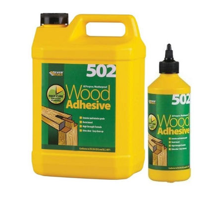 502 All Purpose Weatherproof Wood Adhesive is a high quality, resin-based wood adhesive for all wood bonding applications. It can be used internally and externally and provides a high strength, impact-resistant bond that is usually stronger than the wood itself.